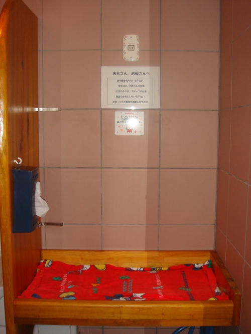 女性用トイレにおむつ交換ベッドがあります。